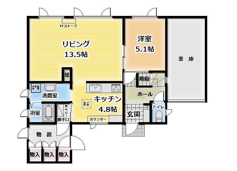 | 間取り | 3LDK1階:LDK18.3帖 洋室5.1帖 / 2階:洋室4.6帖 洋室6.3帖 |