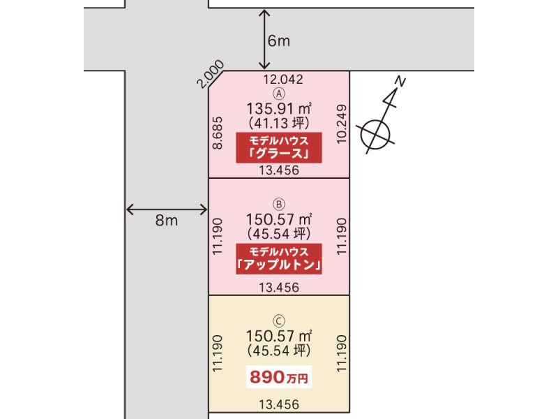 総区画数1区画/全3区画 接道状況 一方 - 南西側幅8.00mの公道に9.10m接道