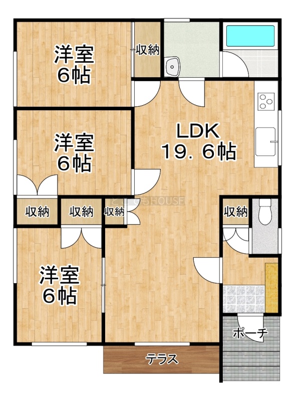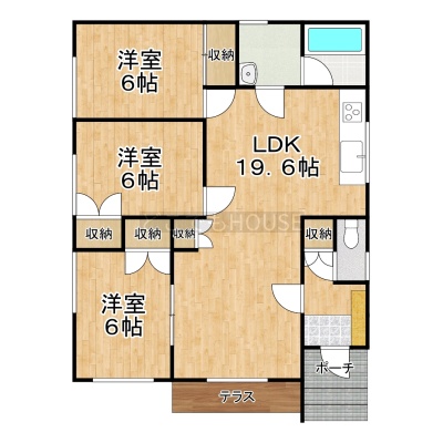 | 間取り | 3LDK1階:LDK19.6帖 洋室6帖 洋室6帖 洋室6帖 |
