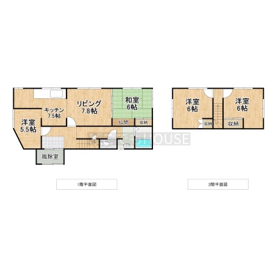 | 間取り | 4LDK1階:LDK15.3帖 洋室5.5帖 和室6帖 / 2階:洋室6帖 洋室6帖 |