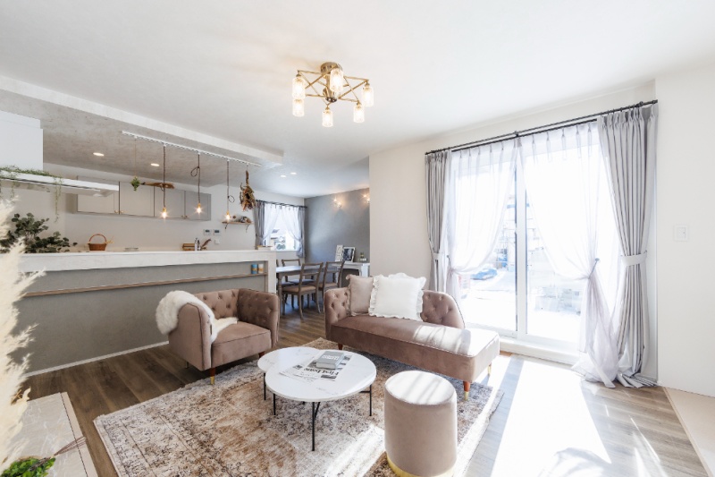 【リビング】ホワイト・ブランのナチュラルな内装です。(2025年2月撮影)