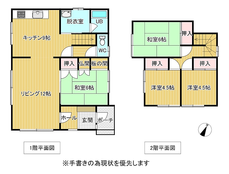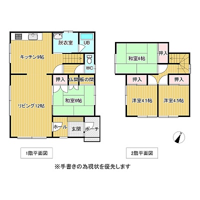 | 間取り | 4LDK1階:LDK21帖 和室6帖 / 2階:和室6帖 洋室4.5帖 洋室4.5帖 |