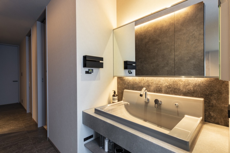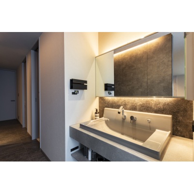 間接照明でホテルライクな洗面スペース