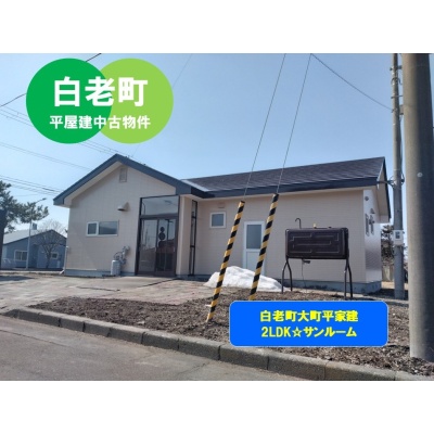 ここに注目!白老町大町に佇む、一部リフォーム済みの温かい平屋戸建てをご紹介します。 広々とした288.38m²の敷地には、お庭や駐車場があり、ゆとりのある暮らしが叶います。 室内は16帖のLDKを中心に、使い勝手の良い2LDKの間取り。システムキッチンや洗面化粧台など、水回りの設備も充実しており、快適な毎日をサポートします。屋根と外壁の塗装も施され、気持ちよく新生活をスタートできますね。 南東向きの角地で日当たりも良好、閑静な住宅街に位置しています。JR白老駅まで徒歩14分とアクセスも良く、役場やコンビニ、中学校も徒歩圏内。暮らしに必要な施設が身近に揃い、安心してお住まいいただけます。 灯油暖房や灯油ボイラーなど、北海道での生活に嬉しい設備も完備。広々としたお庭で家庭菜園を楽しんだり、お子様やペットとのびのび過ごしたり。この平屋で、新しい家族の思い出をたくさん作ってみませんか?