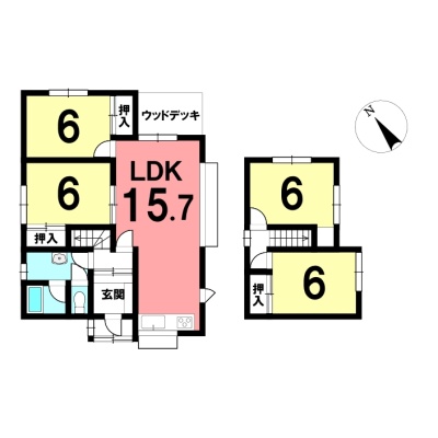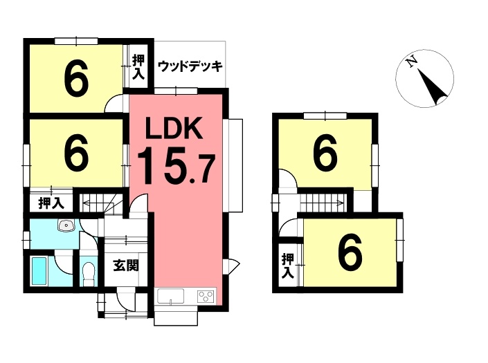 | 間取り | 4LDK1階:LDK15.7帖 洋室6帖 洋室6帖 / 2階:洋室6帖 洋室6帖 |