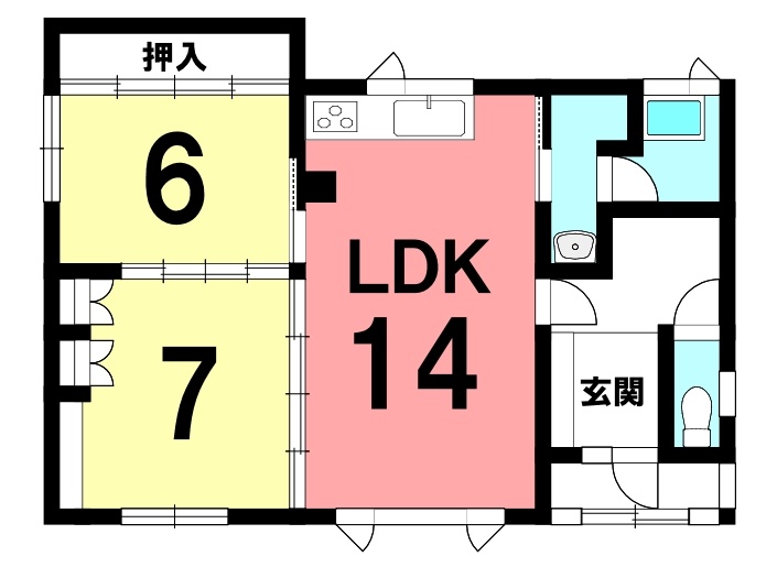 建物の階建 地上1階建 構造 木造 間取り 2LDK1階:LDK14帖 洋室7帖 洋室6帖 駐車場 あり 駐車場台数:3台接道状況 一方 - 北東側幅20.00mの公道に2.00m接道