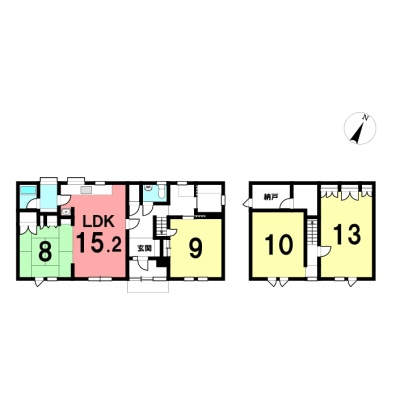 | 間取り | 4SLDKLDK15.2帖 洋室9帖 和室8帖 洋室13帖 洋室10帖 |