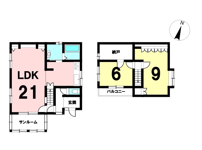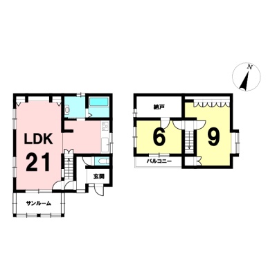 | 間取り | 2LDK1階:LDK21帖 / 2階:洋室6帖 洋室9帖 |
