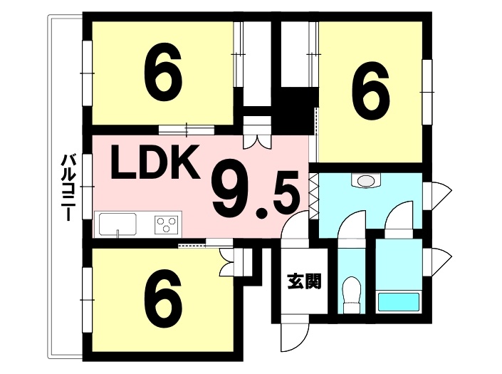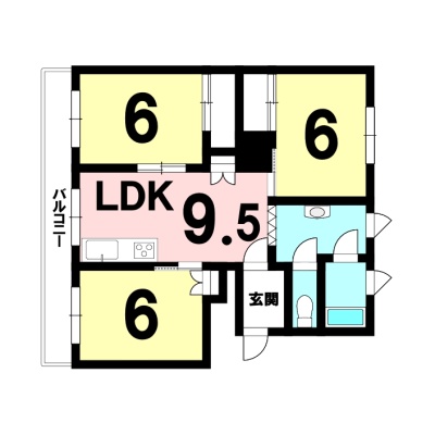 3DK(64.54m²)└ DK9.5帖 洋室6帖 洋室6帖 洋室6帖