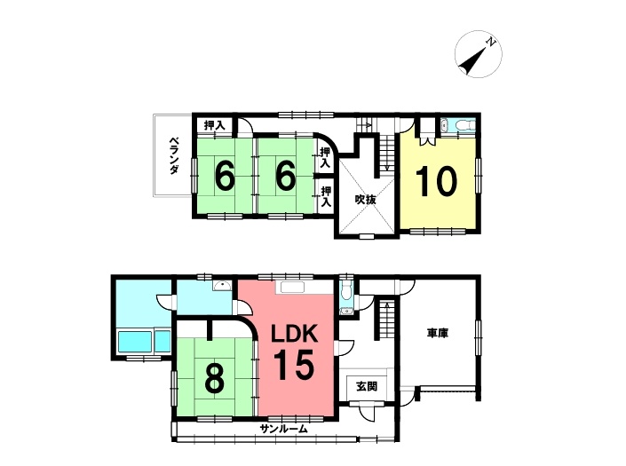 | 間取り | 4LDK1階:LDK15帖 和室8帖 / 2階:洋室10帖 和室6帖 和室6帖 |
