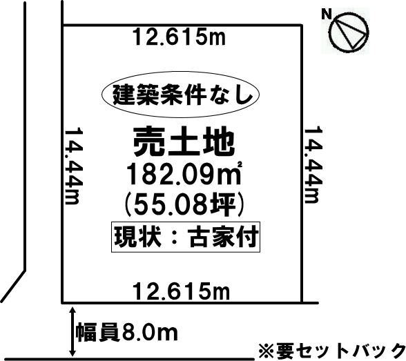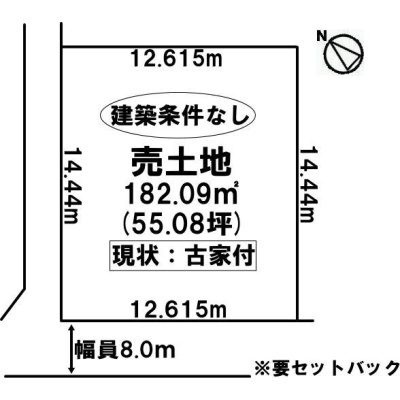 | 土地面積 | 182.09m² (55.08坪)(公簿)※セットバックが必要 |