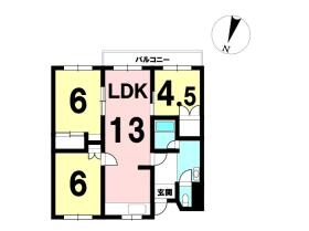 3LDK(62.13m²)└ 1階:LDK13帖 洋室6帖 洋室6帖 洋室4.5帖