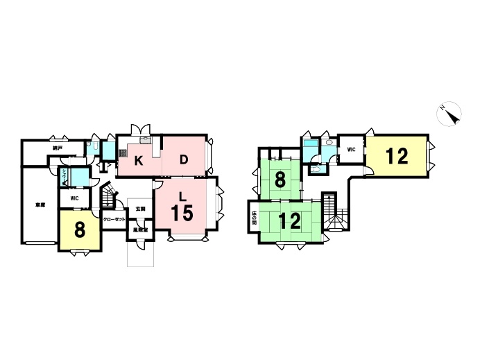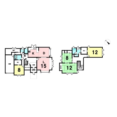 | 間取り | 4SLDK1階:L15帖 洋室8帖 / 2階:洋室12帖 和室8帖 和室12帖 |