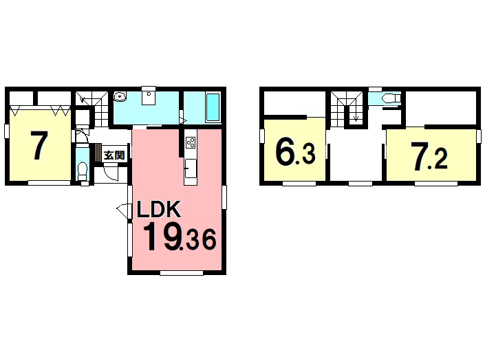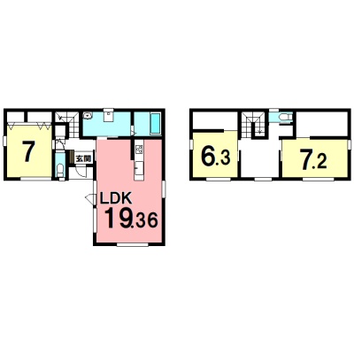 | 間取り | 3LDK1階:LDK19.3帖 洋室7帖 / 2階:洋室7.2帖 洋室6.3帖 |