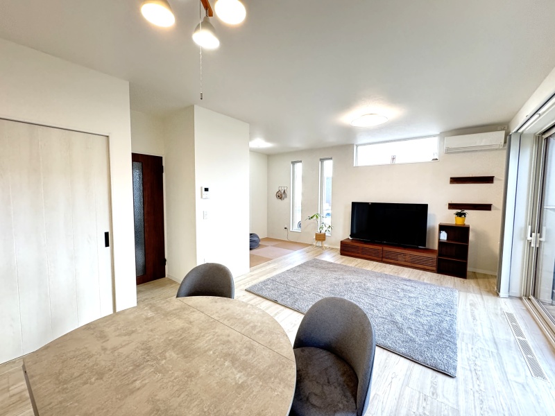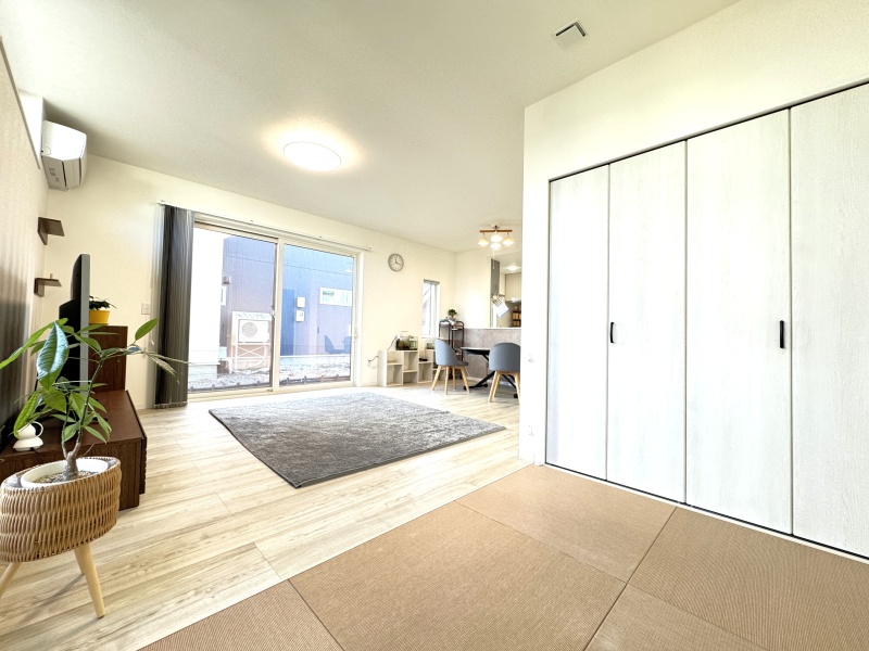 ここに注目!◆18.2帖の開放感あふれるLDKに隣接する3帖の和室と合わせれば、20帖以上のゆとりある空間として活用できます♪ ◆キッチンで家事をしていても、お子様が遊んだりお昼寝したりする様子を常に視界に入れられるので安心♪収納付きなので、おもちゃや着替えもサッと片付き、リビングの美観を損ないません♪ ◆パントリーやWIC、SICなど、適材適所の収納配置♪ 築4年と新しく、1坪タイプの広々バスルームや独立したランドリールームなど、最新の設備も魅力です♪ ◆建物は安心の「長期優良住宅」認定♪足元からじんわり暖かい床暖房を完備し、太陽光パネル搭載のオール電化住宅で、家計にも環境にも優しい設計です ◆リビングに設置されている寒冷地仕様エアコンは、夏の冷房はもちろん、冬の補助暖房としても活躍♪床暖房とのダブル暖房で、冬をより快適に、より安心して過ごせます♪ ◆広い裏庭ではバーベキューやガーデニング、ドッグランなど多様な用途に活用できます♪ ◆アスファルト舗装済みの駐車場は3台の駐車スペースと物置を完備♪ ◆売主様が入居中ですが、ご案内時には売主様不在でのご案内もできますのでお気軽にお問い合わせください♪