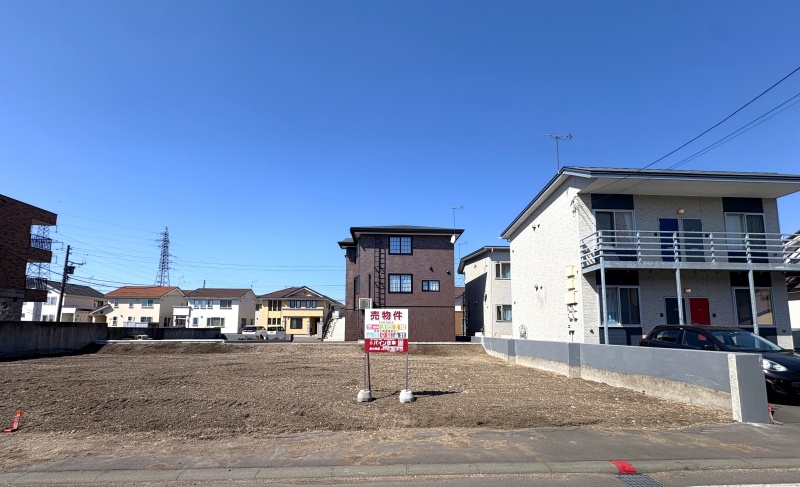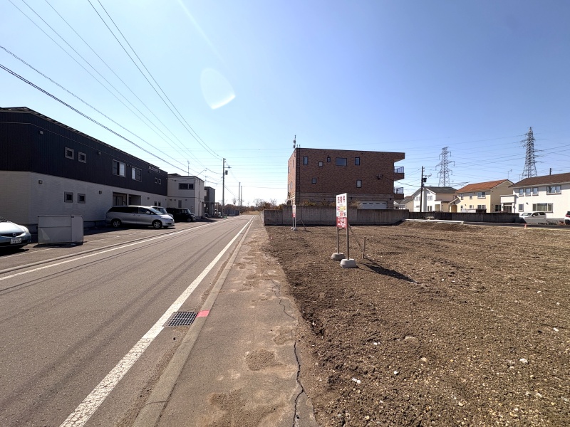 ここに注目!南向きで日当たりの良い整形地♪◆前面道路8mで車の出入りもスムーズなゆとりある間口が魅力です♪◆建築条件付。ハウスメーカーさんとの共同商品・新築規格住宅『Happiness(ハピネス)』で、手の届く価格で安心の新築マイホームが実現します♪【税込価格2,288万円】給排水・ガス配管・杭工事や照明設備なども入った充実のパッケージです。画像の参考プラン以外にも豊富な間取りプランをご用意しており、価格も仕様もわかりやすい家づくりをお手伝いします♪◆土地建物込み3,388万円、月々8万円台からのお支払いで、明野元町の新築マイホームが実現します♪現在のお家賃と比べてみてください♪※借入額3,388万円・40年返済・金利1.05%・元利均等・ボーナス払いなしの場合の概算です。◆明野元町二丁目バス停まで徒歩3分、札幌や空港方面へのアクセスも良好♪◆徒歩圏にスーパー・コンビニ・ドラッグストアが多数揃い、拓進小学校まで徒歩10分。人通りの多い明るい通学路でお子様も安心です◆近隣にはイオンなど商業施設が集まっており、大きな公園も徒歩圏。市内でも暮らしやすい環境です◆測量・境界確定済。更地につき即建築が可能♪