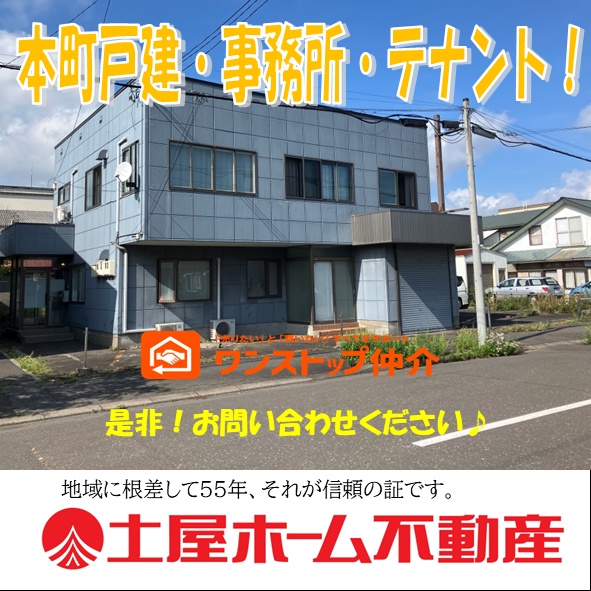 ここに注目!苫小牧市本町2丁目に、店舗・事務所としてご利用いただける一棟物件が登場しました。 JR苫小牧駅から徒歩17分。広々とした敷地は約638㎡、建物は約56㎡の2階建て鉄骨造です。南東向きで明るい空間が期待できます。 事業運営に嬉しい無料駐車場は10台分を確保。お客様や従業員の方々も安心してご利用いただけます。 周辺にはコンビニ、スーパー、郵便局、飲食店などが揃い、日々の業務や生活にも便利な環境が魅力です。コメダ珈琲店も近く、休憩時間も充実しそうです。 医療関係や事務所としての利用にも適しており、多様なビジネス展開の可能性を秘めています。 灯油暖房、ガス設備、給排水設備も完備。 この機会に、理想のビジネス拠点を手に入れませんか?ぜひ一度現地をご覧ください。 お問い合わせをお待ちしております。