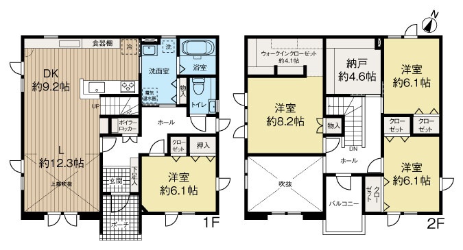 | 間取り | 4LDK1階:LDK21.5帖 洋室6.1帖 その他4帖 / 2階:洋室8.2帖 洋室6.1帖 洋室6.1帖 その他4.1帖 |