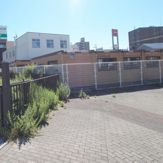 プレハブは売主様負担で撤去可能です。国道と駅前ロータリーにも接しています。