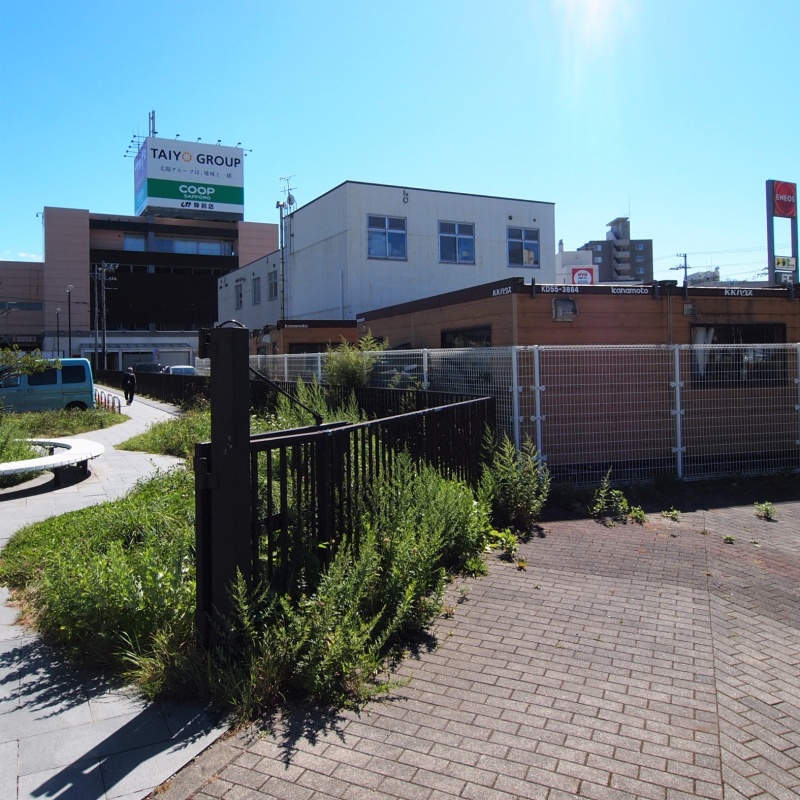 プレハブは非固定状態でございます。国道と駅前ロータリーにも接しています。