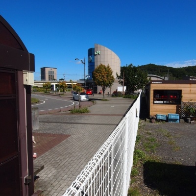 当該敷地内から撮影、JRむろらん駅が目の前でございます。