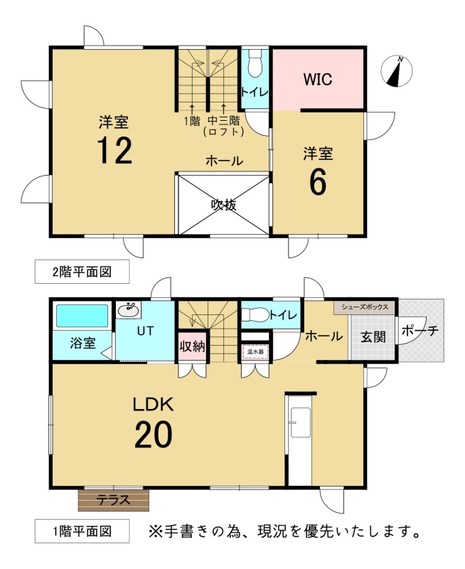 | 間取り | 2SLDK1階:LDK20帖 / 2階:洋室12帖 洋室6帖 S3帖 |