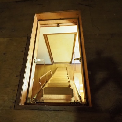 屋根裏部屋【2階ホールから天井・格納式・折り畳み式階段にてアクセスできます】収納庫・コレクション・趣味の部屋にも活用可能