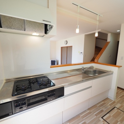 1階・キッチン・リビング:キッチンは人気の対面式、リビングとの会話が弾みます🎵