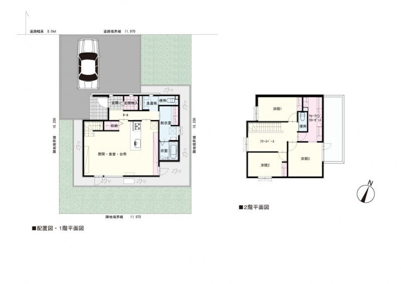 建物の階建 地上2階建 主要採光面 南 構造 木造 接道状況 一方 - 北側幅8.00mの公道に11.97m接道 位置指定:無