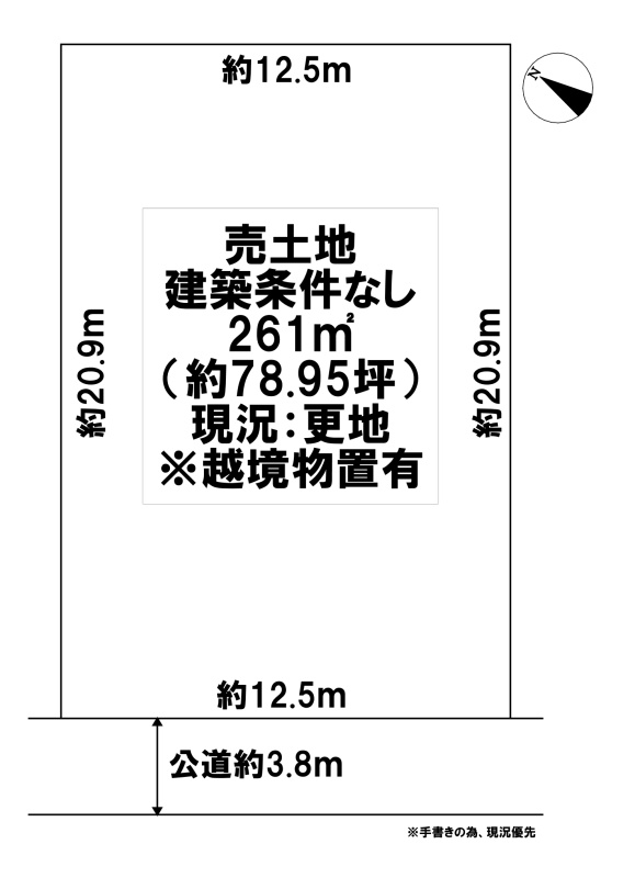 | 現況 | 更地(※越境物置取壊し後、お引渡し) |