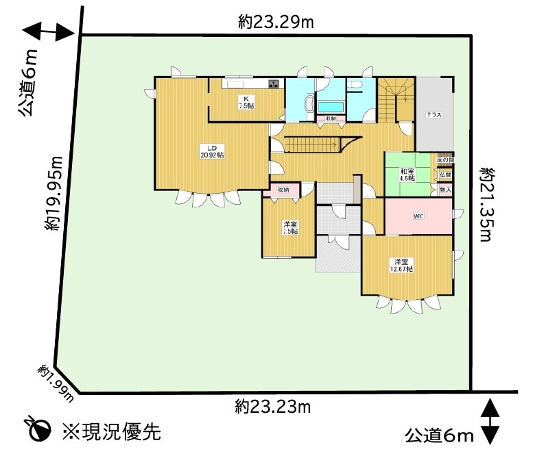 - 北西側幅6.00mの公道に19.95m接道
