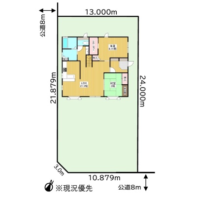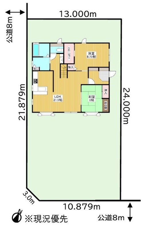 - 西側幅8.00mの公道に21.87m接道