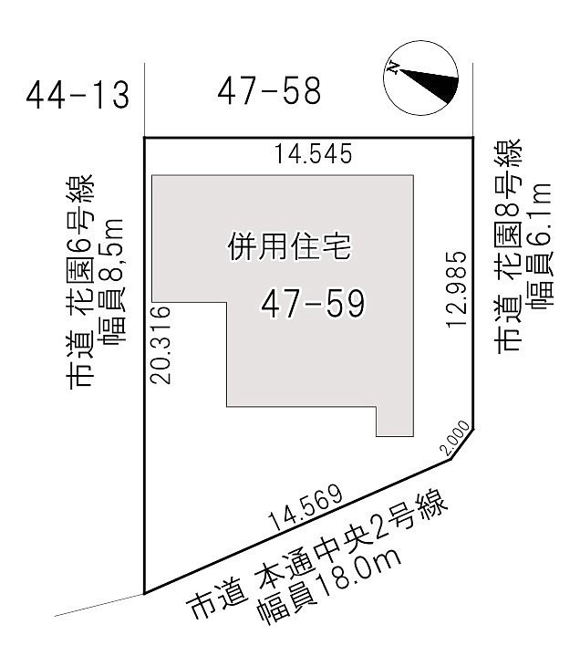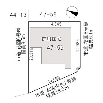 - 北西側幅8.50mの公道に20.00m接道
