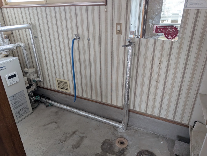 ボイラー室の洗濯機置き場
