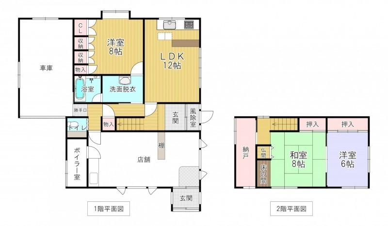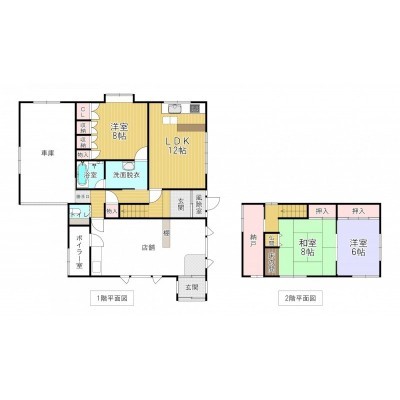 | 間取り | 3LDK1階:LDK12帖 洋室8帖 / 2階:和室8帖 洋室6帖 |