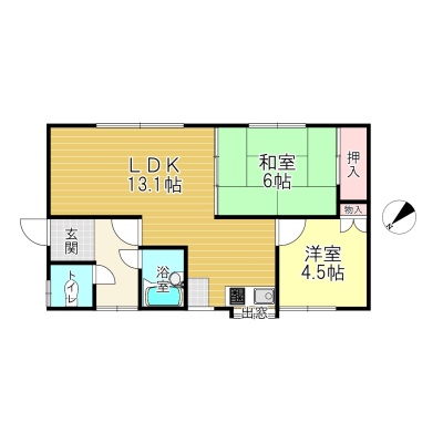 2LDK(49.68m²)└ 1階:LDK13.1帖 和室6帖 洋室4.5帖