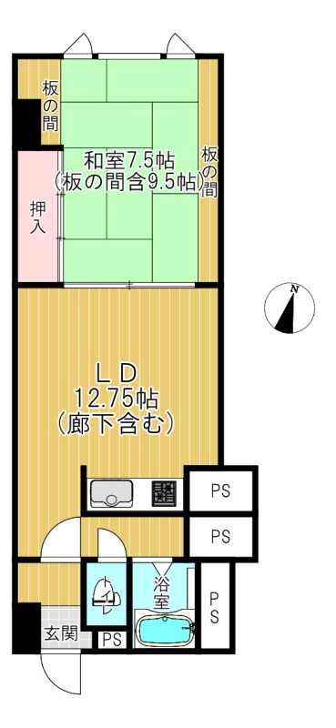 1LDK(42.14m²)└ LDK12.75帖 和室9.5帖