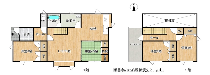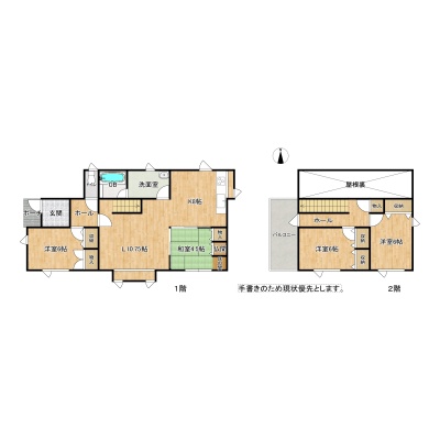 | 間取り | 4LDK1階:LDK18.75帖 和室4.5帖 洋室6帖 / 2階:洋室6帖 洋室6帖 |