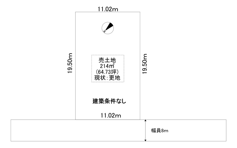 総区画数-/- 接道状況 一方 - 北西側幅8.00mの公道に11.02m接道
