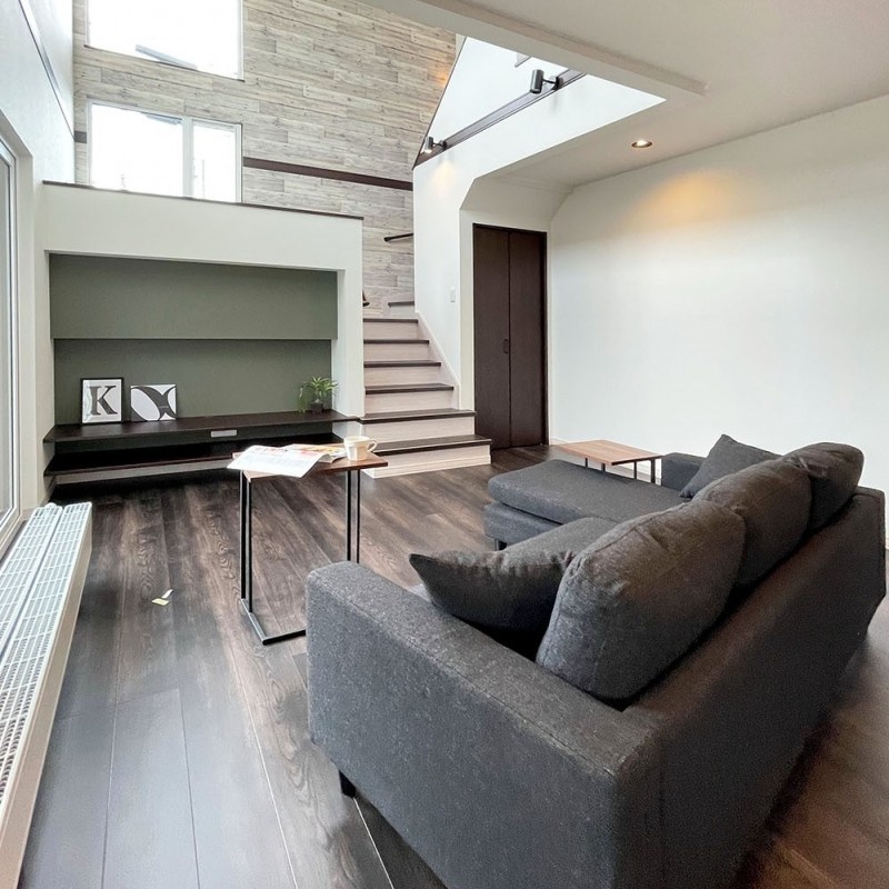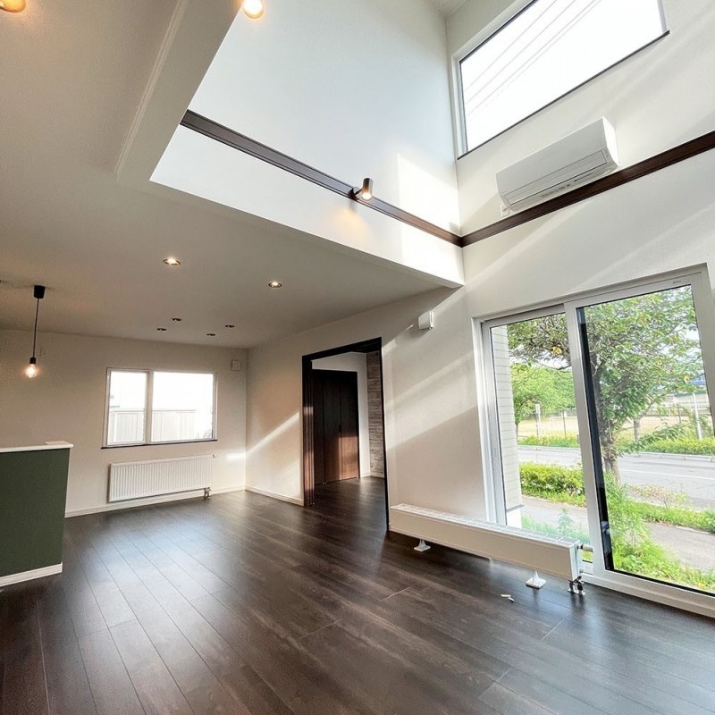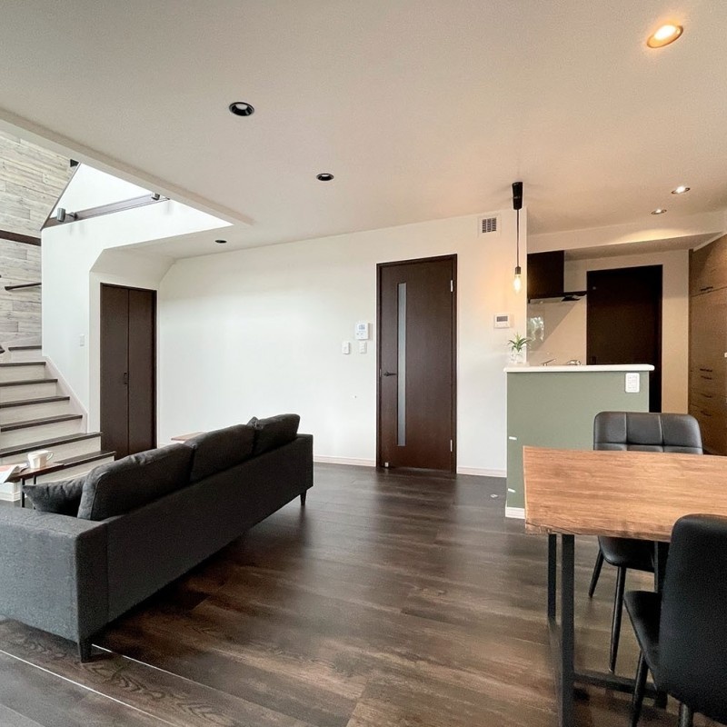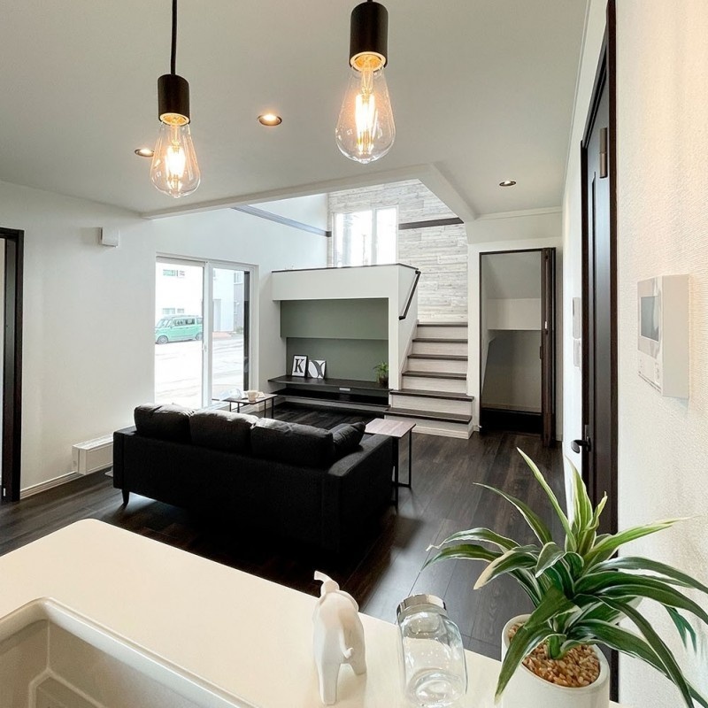 ここに注目!南西角地・日当良好。学校区の中央小学校まで徒歩2分。スーパー、コンビニ、ドラッグストア、郵便局など暮らしに便利な施設が多数揃っている人気のエリアです♪ *家の中は3.17帖の吹抜けで開放的なLDK *眺めの良い中2階ラピュタ1・1/2 *コンパクトにまとまった水回りは、家事を楽にしてくれます *家族の顔が見える対面キッチンにはカップボードもついています *他にも沢山の中2階物件もあります。