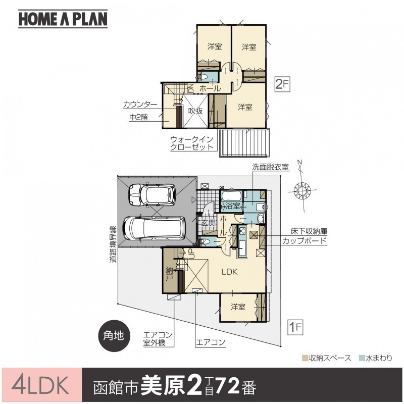 |美原2丁目|南西角地|中2階|収納多数|