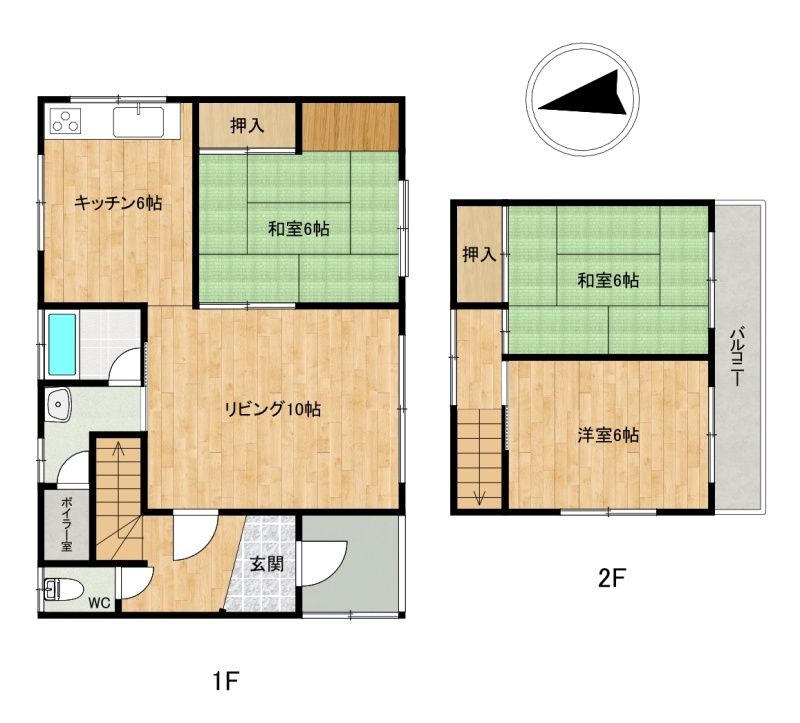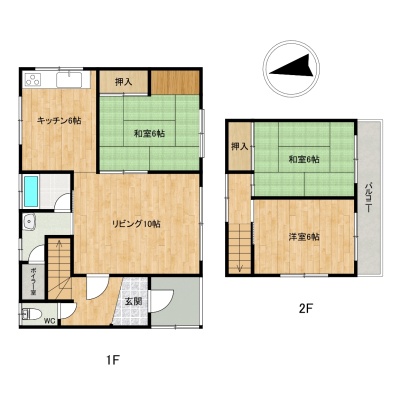 間取り 3LDK1階:L10帖 / 2階:和室6帖 和室6帖 / その他:洋室