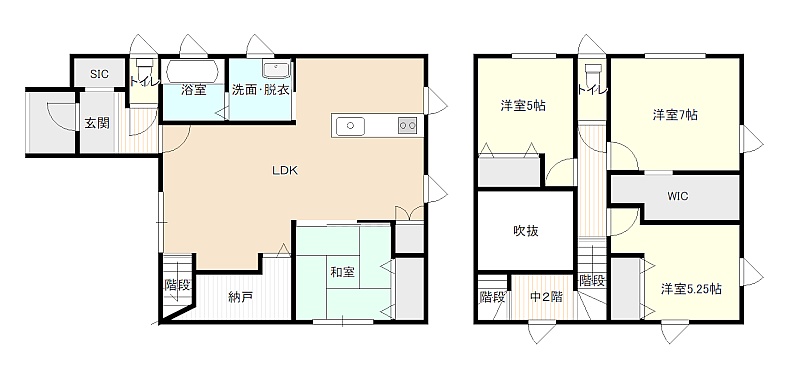 | 間取り | 4LDK1階:LDK18.2帖 和室4.5帖 / 2階:洋室5.25帖 洋室5.37帖 洋室7帖 |