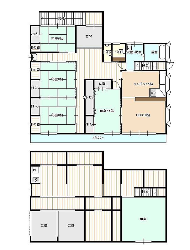 | 間取り | 5LDK1階:和室 / 2階:LD K 和室8帖 和室8帖 和室7.5帖 和室6帖 |