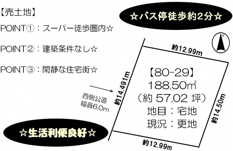 | 土地面積 | 188.5m² (57.02坪)(公簿) |
