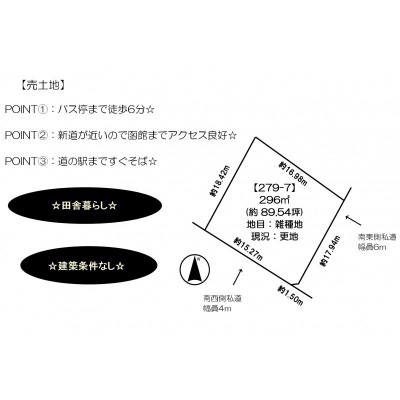 総区画数-/- 接道状況 - 南西側幅4.00mの私道に15.27m接道