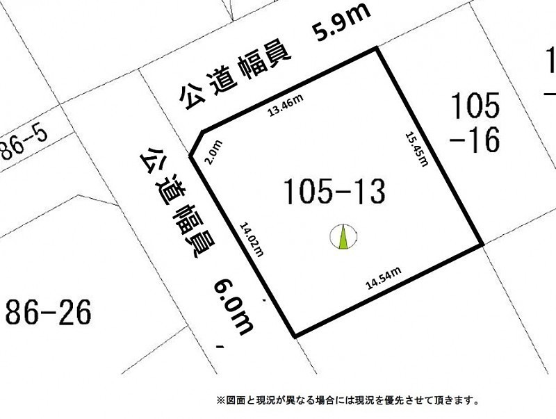 - 北西側幅5.90mの公道に13.46m接道