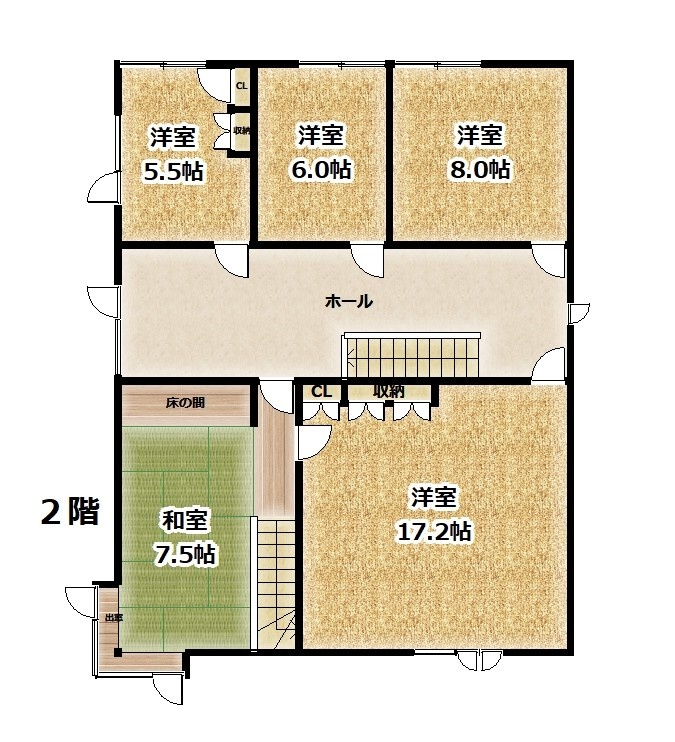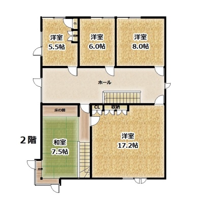 | 間取り | 7DK以上1階:その他 その他 LDK15.5帖 和室6帖 / 2階:洋室17.2帖 洋室8帖 和室7.5帖 洋室6帖 洋室5.5帖 |