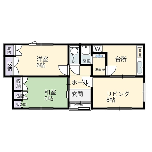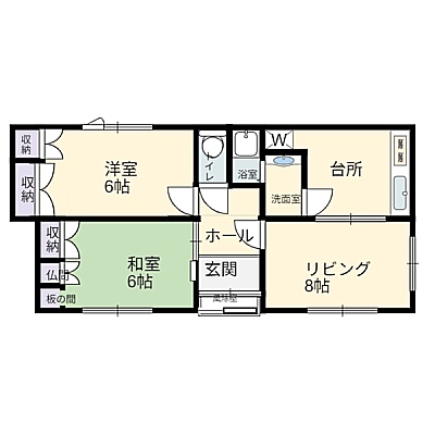 | 間取り | 2DKDK8帖 洋室6帖 和室6帖 |