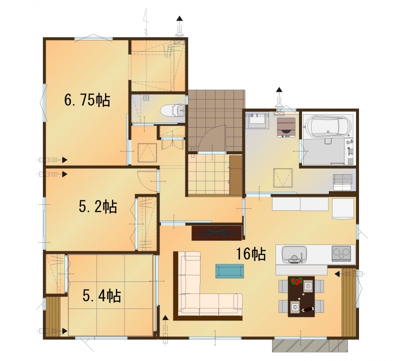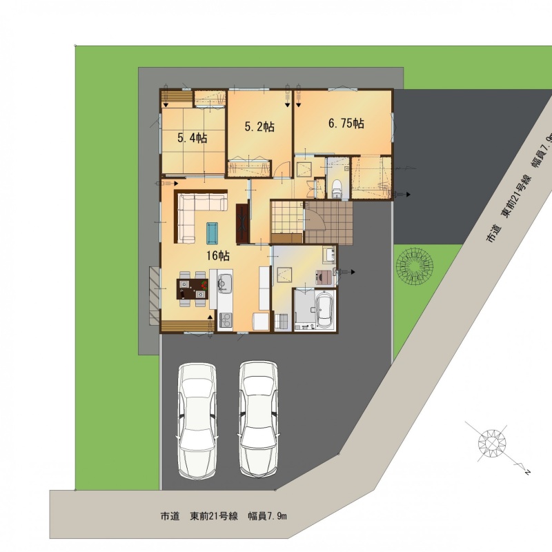 | 間取り | 3LDK1階:LDK6.75帖 洋室5.4帖 洋室5.2帖 |